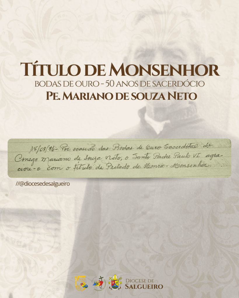 Na tarde da sexta-feira, 29 de novembro de 2025, foram exumados os restos mortais do Monsenhor Mariano de Souza Neto, sepultado no Cemitério Luiza Gonzaga de Sá Sampaio, no município de Salgueiro-PE, sede episcopal.